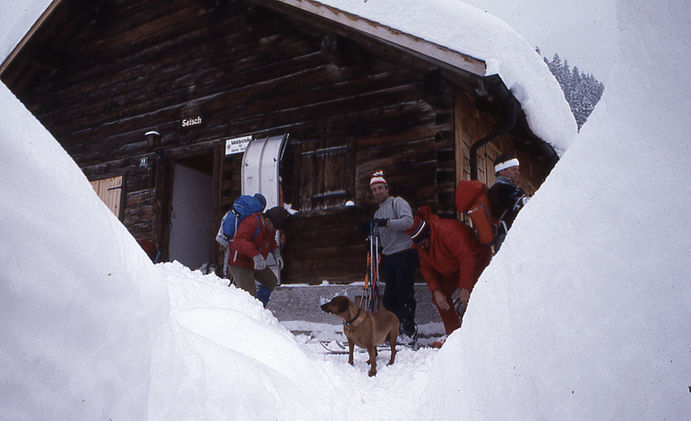 Schon ein Jahr nach der Gründung, 1955 suchte die Bergrettung Nenzing bei der Agrargemeinschaft Nenzing um eine Lager für diverses Rettungsmaterial in der Gamperdond an. In der alten Setsch Hütte im Tschöppis wurde uns ein solcher zur Verfügung gestellt. Eine kleine Unterkunft die Notdürftig für das Unterbringen von Material jedoch ausreichend war. Immer wieder wurde unsere Mannschaft zu teils schwierigen Bergungen im Tal gerufen und so wurde schon bald die Idee des Bereitschaftsdienstes geboren. Und so verrichten auch heute noch Bergretter/innen an den Ferienwochenenden Bereitschaftsdienst in dieser besonderen Bergwelt. Wenngleich natürlich immer wieder der Hubschrauber zum Zug kommt. Der damalige Stall wurde mit sehr viel Eigenregie, tatkräftigem Einsatz vieler Kameraden und Unterstützung der Agrargemeinschaft Nenzing in 2 Etappen ausgebaut und bietet so Platz für mehr als 20 Retter/innen und wird auch immer wieder für Touren, Ausbildungen und gesellschaftliche Aktivitäten genutzt. Und wenn es um diese Hütte geht, so darf ein Name nicht fehlen, Rudl Schallert, Ehrenhüttenwart und Gründungsmitglied war es, der mit Herzblut und unermüdlichem Einsatz stets zur Stelle war, sei es eine Glühbirne wechseln oder ein Solarpanel montieren. Rudl zeigte bei allen Arbeiten stets seine handwerkliche Vielseitigkeit.